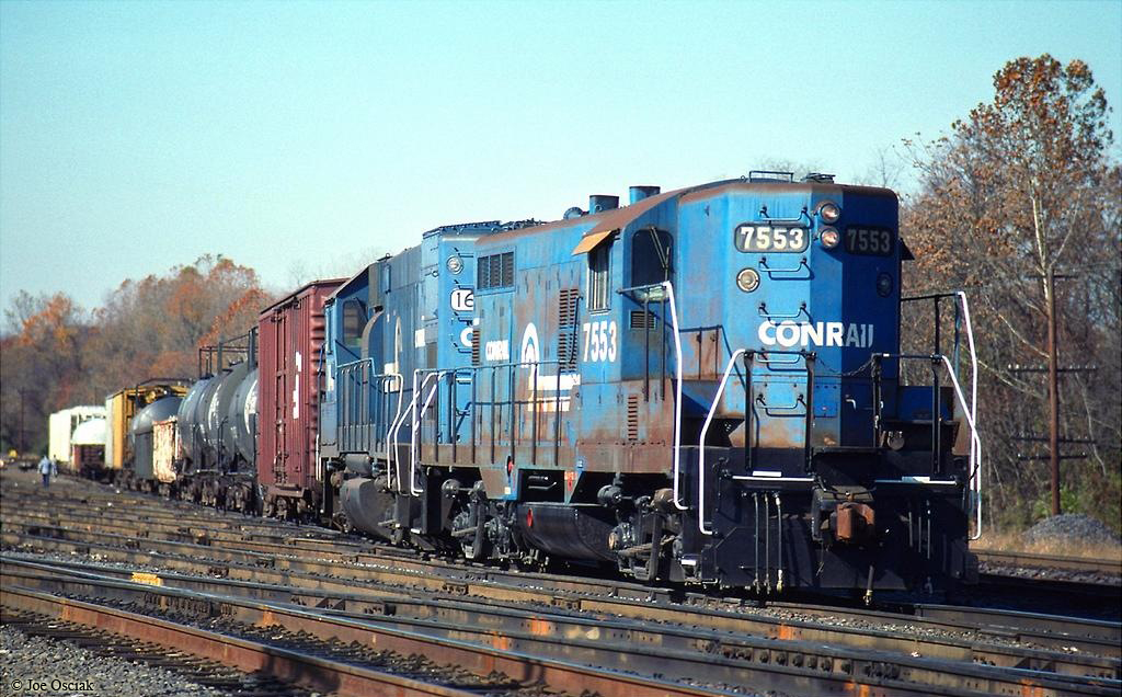 Conrail GP10 7553 is seen drilling Abrams Yard near Norristown, PA on 11/9/1992