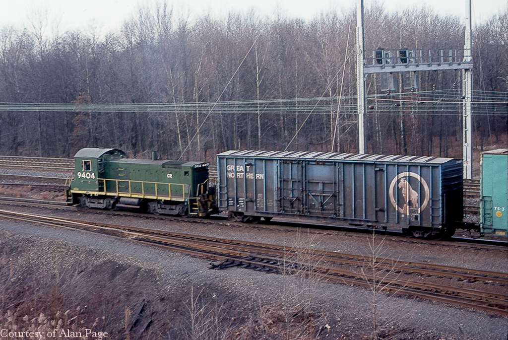 CR SW1001 9404 (ex-RDG 2604) works the Newark yard in November, 1983.