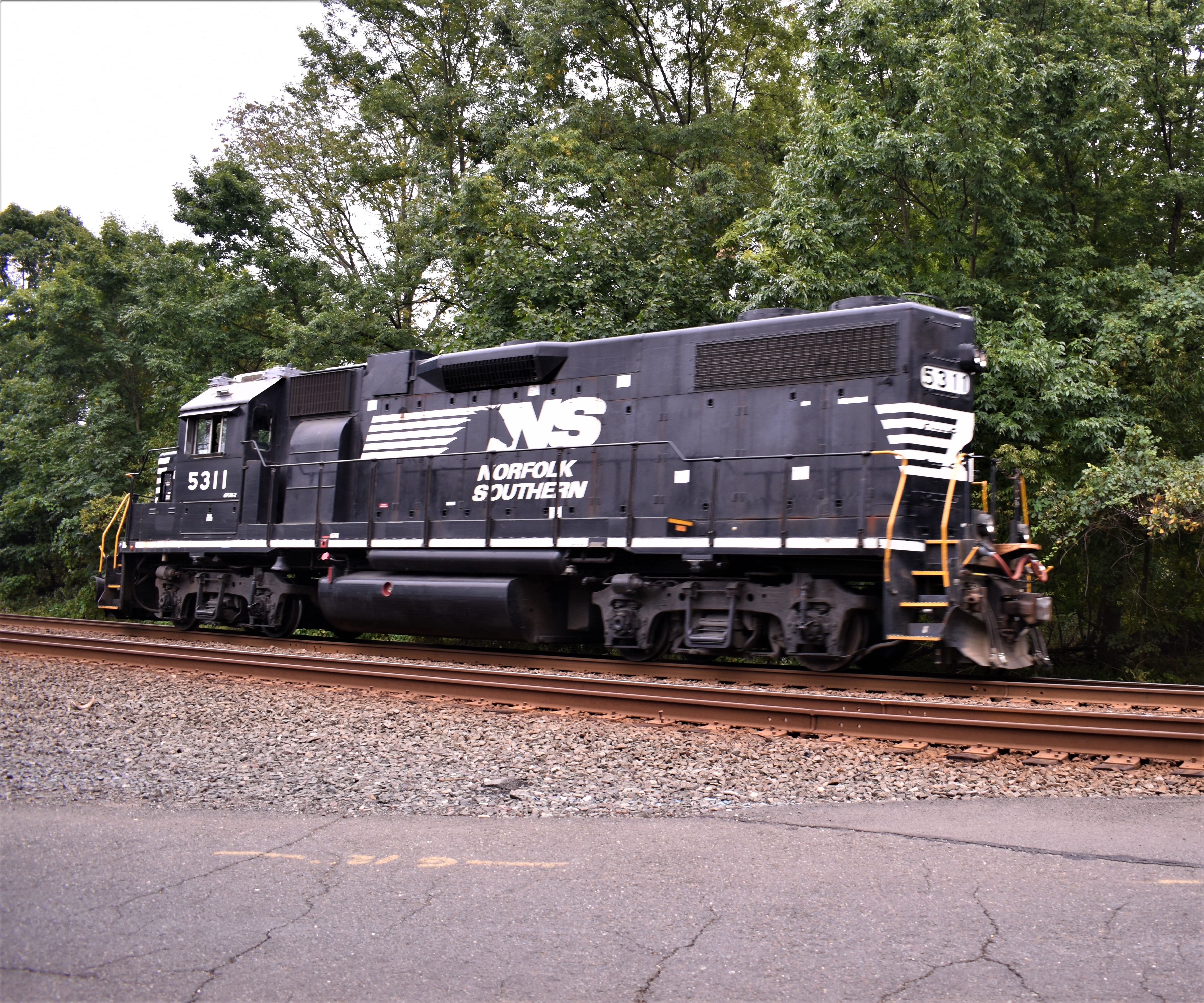 Norfolk Southern GP38-2 #5311, ex Conrail & Penn Central #8129  local MA-1 power, running light, eastbound at South Ave crossing, Middlesex, NJ.  September 24, 2020