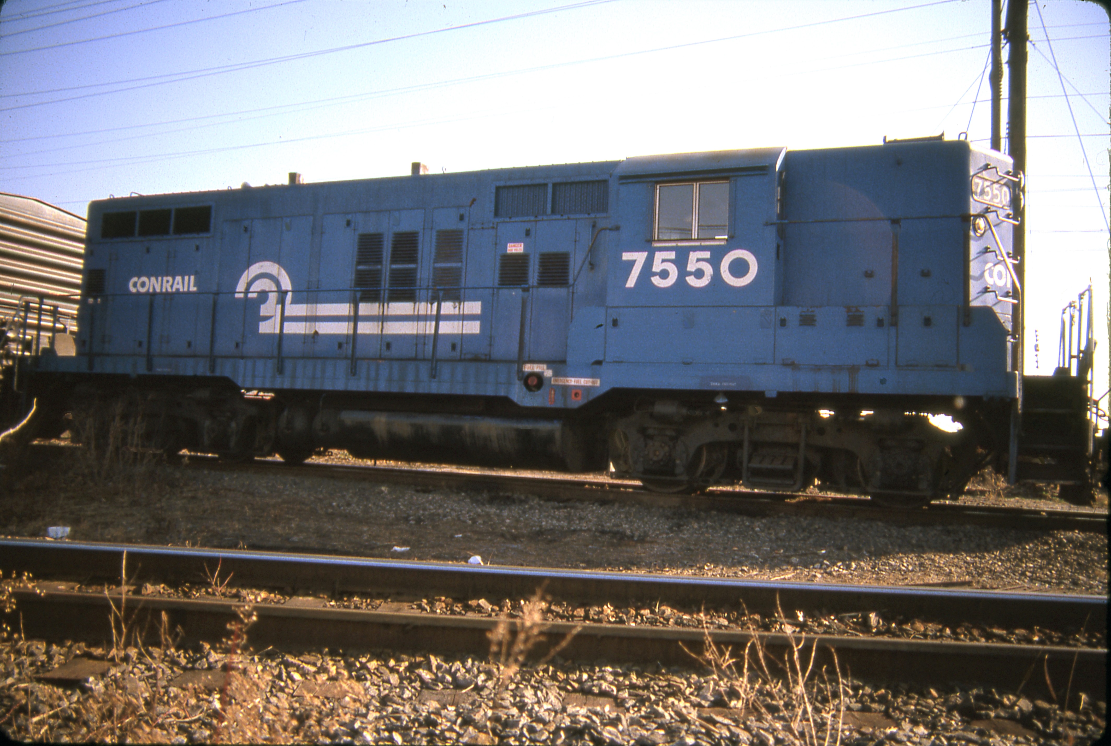 Ex NYC GP-9 # 6043 rebuilt into Conrail GP-10 #7550. North Brunswick County Yards secondary trackage.  January 5, 1986