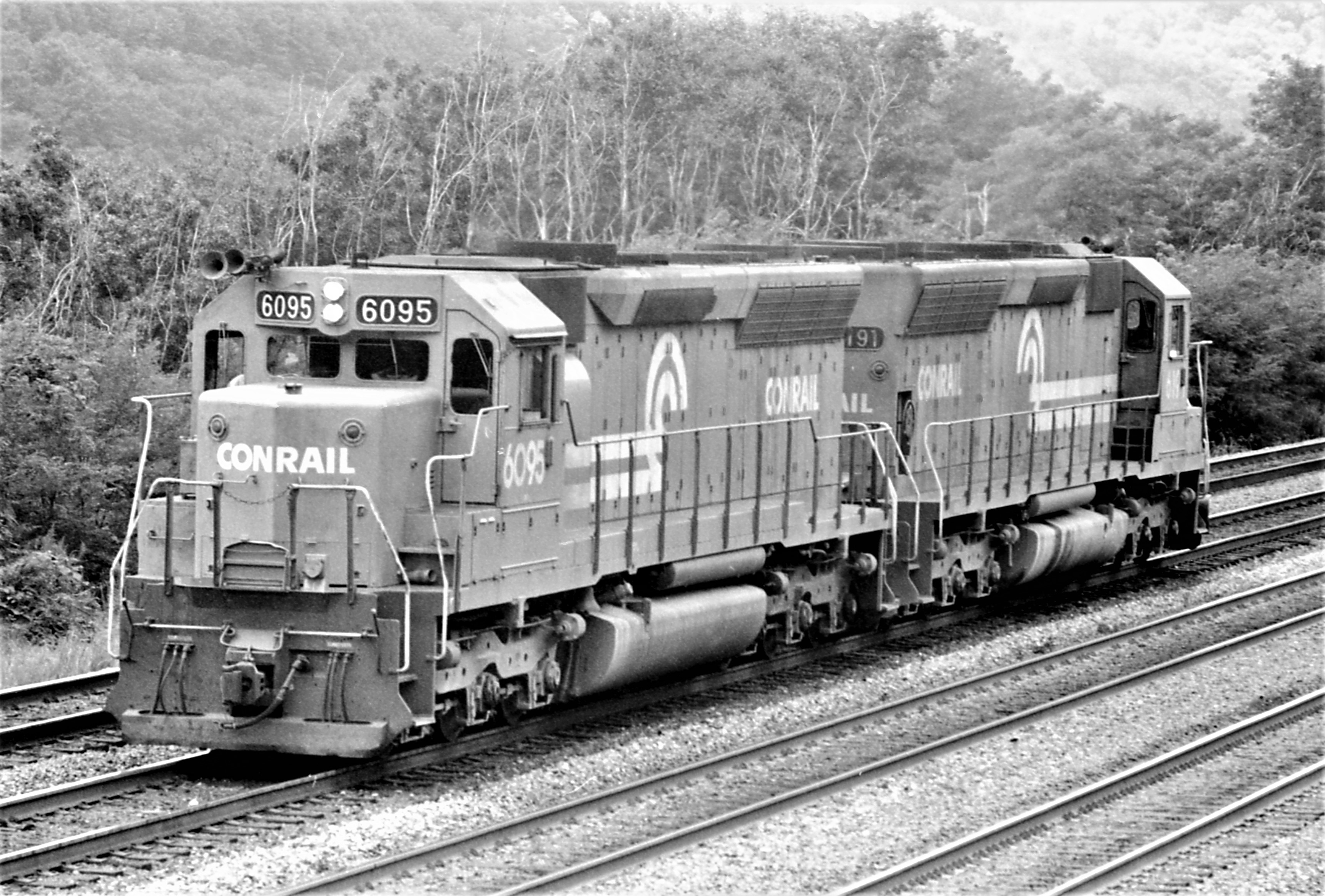 Conrail SD-45 #6095 & #6191 at Bennington Curve, PA. August 19, 1983