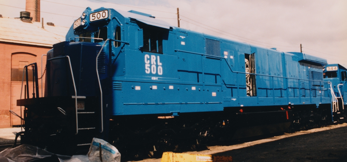 Seen here outside of the Juniata Locomotive Shops. CRL 500 is ex ATSF 8010.