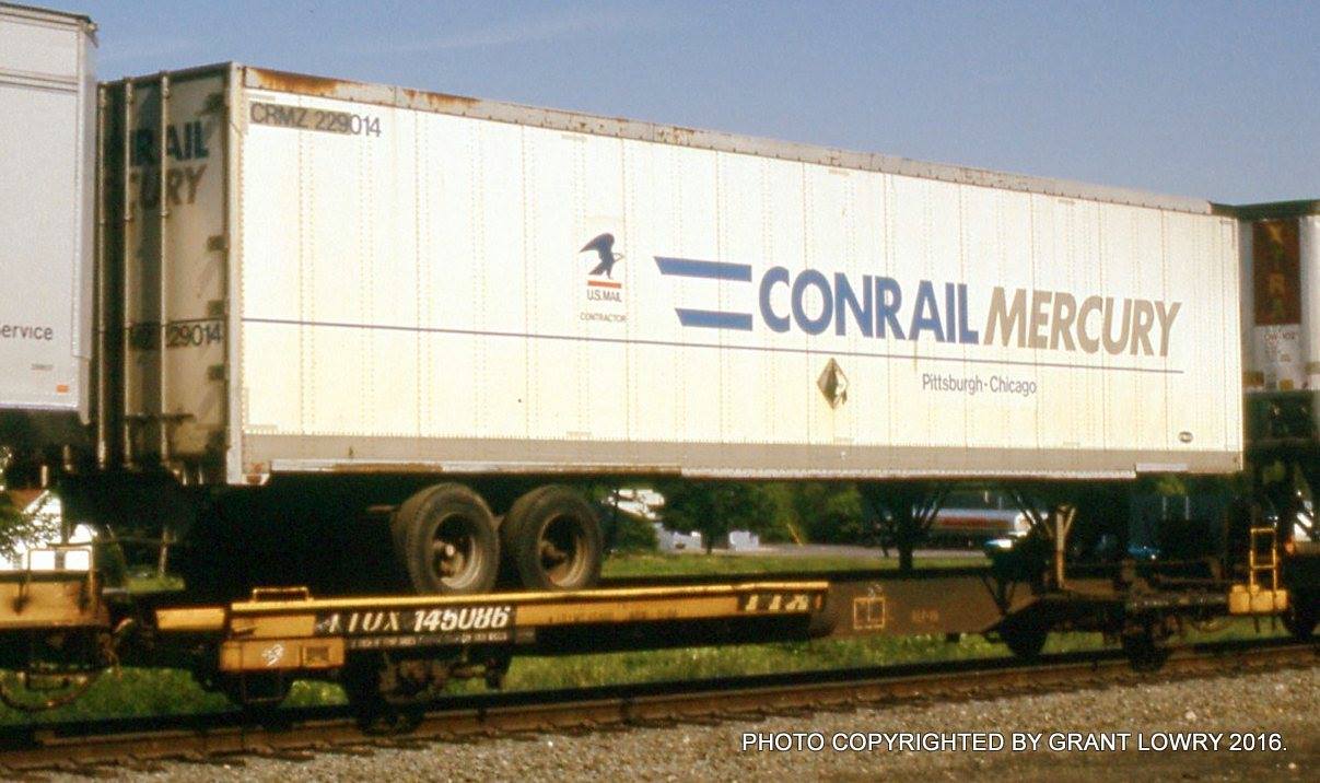 CRMZ 229014 "Pittsburgh - Chicago" on front runner TTOX 145086 at Marysville, PA, 1991 or later.