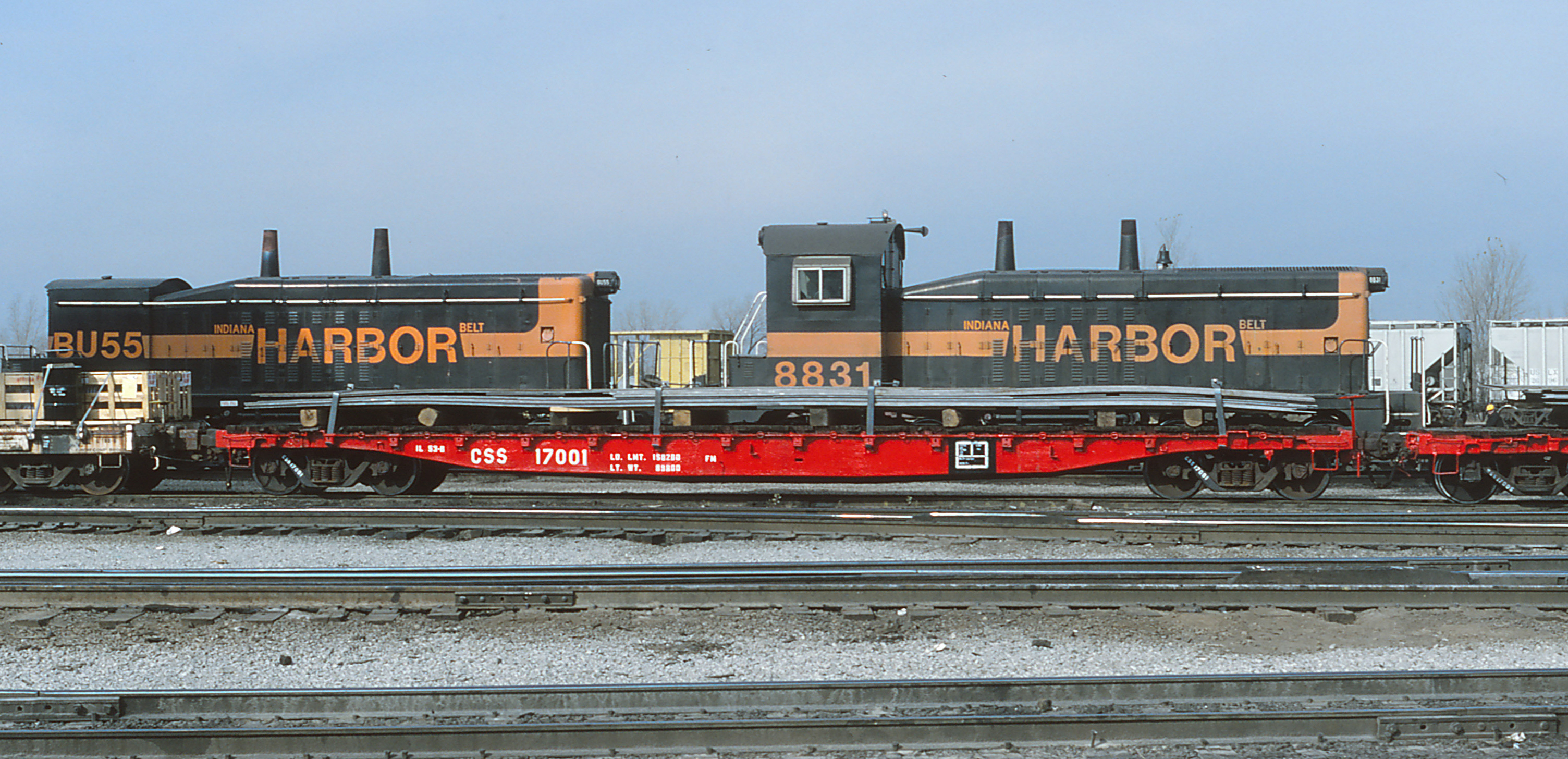 CSS 17001 is seen at Riverdale, IL on 11/18/90. Car is ex CR 716295/PRR 480247 and was built 9-59 as a PRR F41 class flat. Car was deleted 8/5/00 and became EJE 6402 (deleted 6/17/05) and finally LMIC 6402 (deleted 10/1/09).