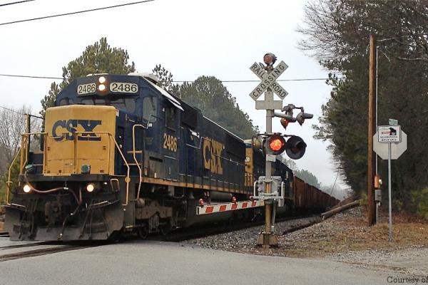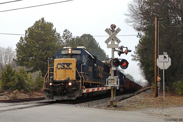 CSX 7824, 8407, and 2490 head WB through College Park, GA on December 20, 2016.
