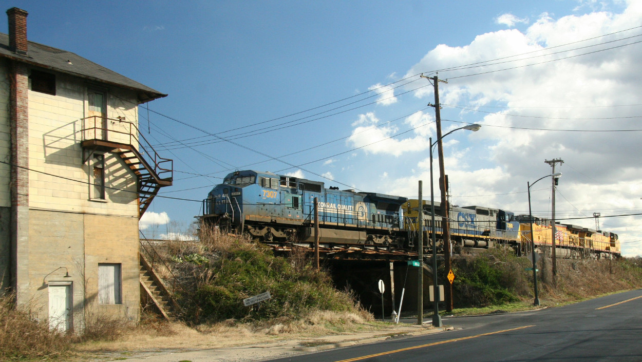 CSXT 7307(ex CR 6067) leads train K888 at R Cabin on the west end of Fulton yard in Richmond, VA back in 2008. Kevin Pratt photo with permission