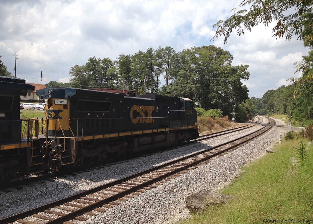 CSXT C40-8W 7329 (CR 6126) leads C40-8W 7882, GP40-2 6105, B40-8 5940, and GP38-2 2553 through Union City, Ga on August 11, 2015.
