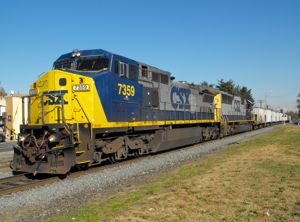CSAO train FC-95 is seen with former CR 6194 & CSX 8575 leading 11 CR ballest cars south at Paulsboro NJ on 11/1/11.