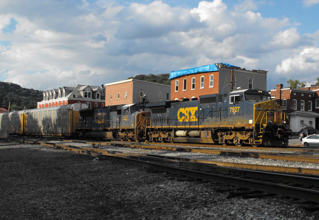 Former LMS 709 is seen leading Q226-09 east at Cumberland MD on 8/10/12.