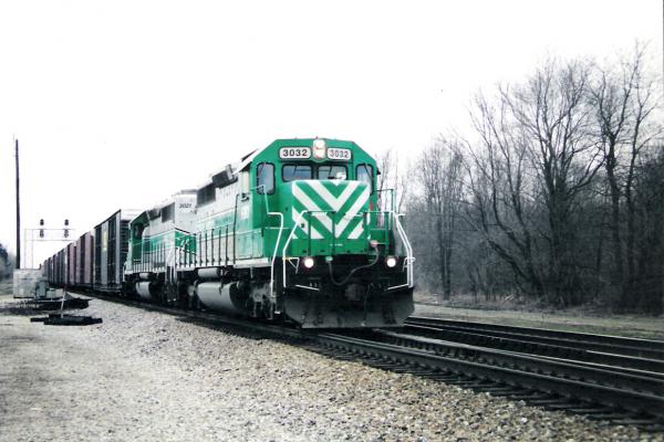 The DCR-01 with DCR 3506, NS 1089 & 9262 are seen leading 89 empties North across the diamond at Porter, DE. The DCR 3506 was added in Harrington due to mechanical issues with the trailing Dash-9. DCR power is very rare above the C&D Canal on NS rails. Photo by Chris Carangi.