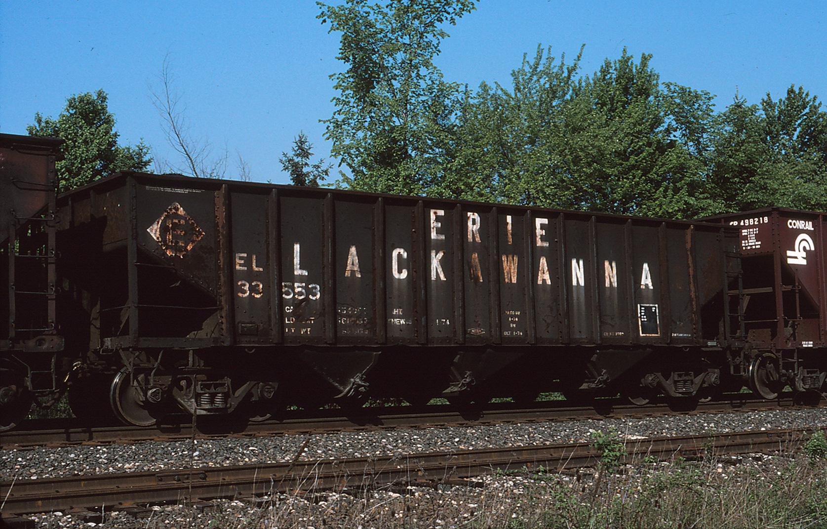 EL 33553 is seen at Hudson, ON on 5/15/98. Car was built 1-74 by Greenville Steel and was deleted 9/1/01. Photo by Randy Faris.