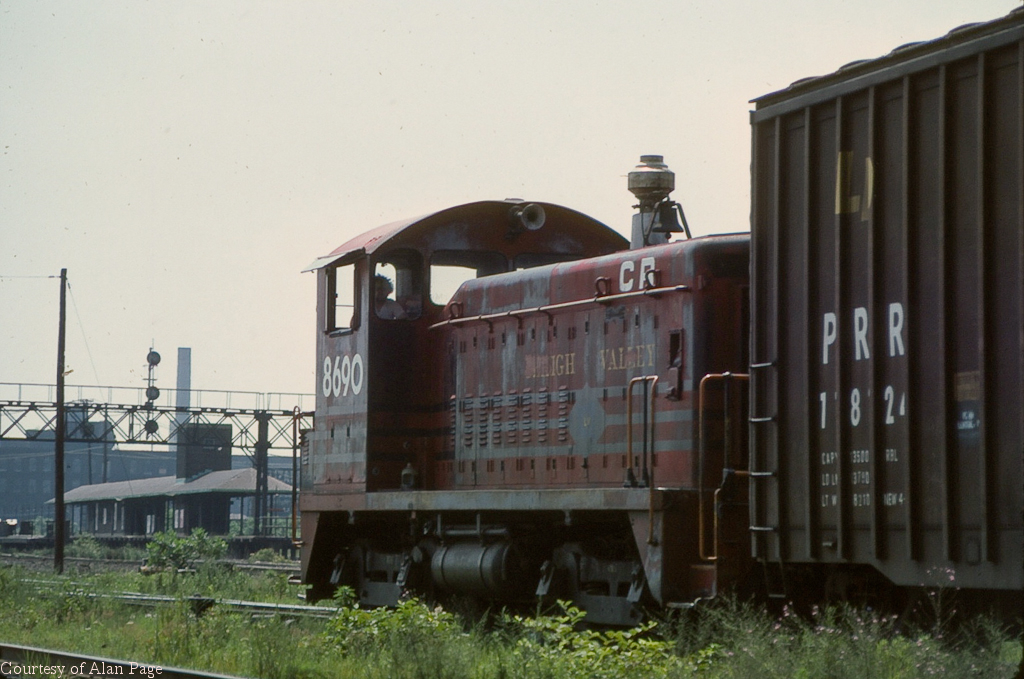 With a former CNJ freight station behind, CR SW-8 8690, ex-LV 276, works the yard at Elizabethport, NJ in July, 1977.