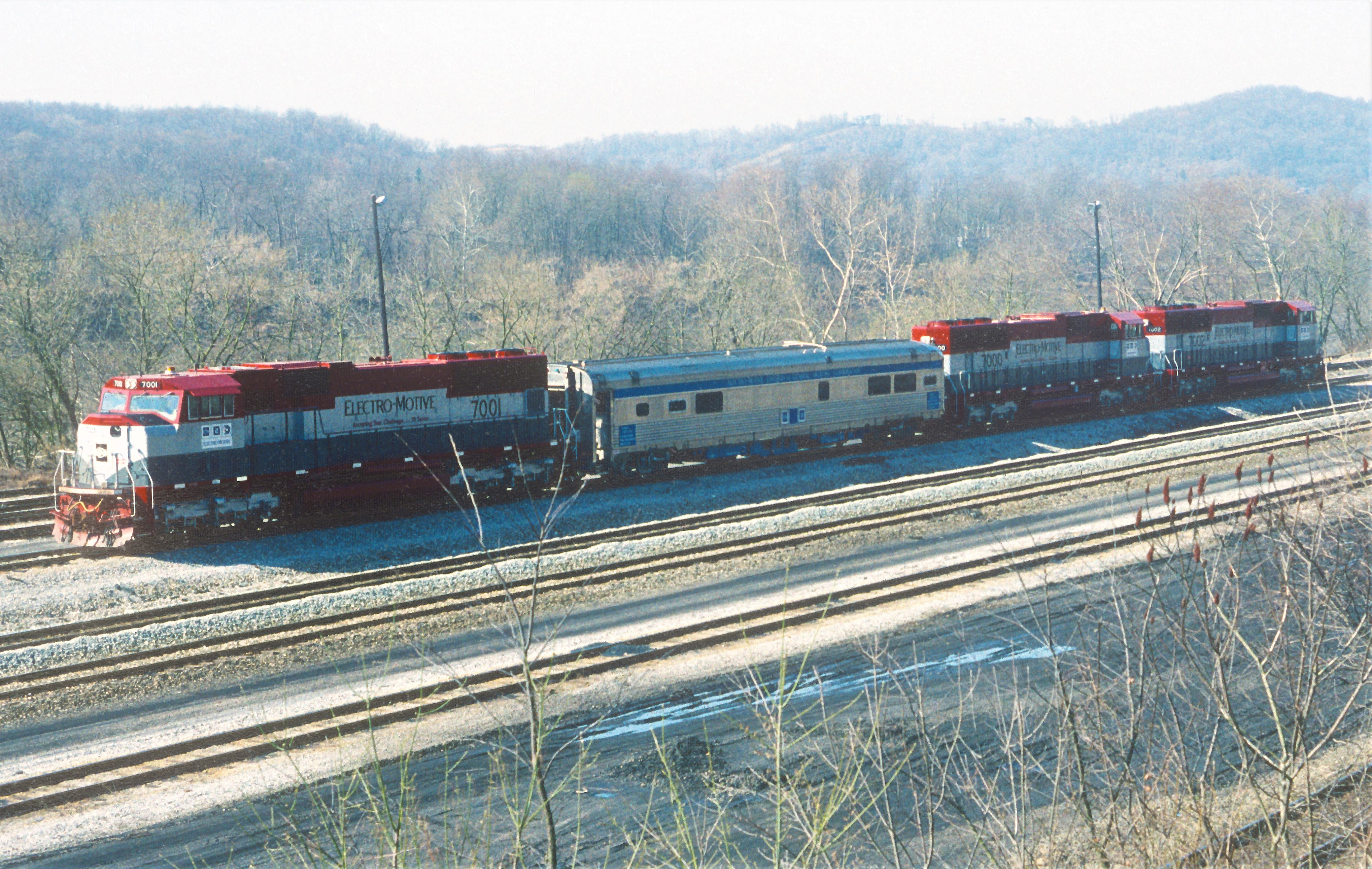 EMD SD70M' Demo's 7000, 7001 and 7002 at Conrail's Shire Oak Yard, PA 4/19/1993