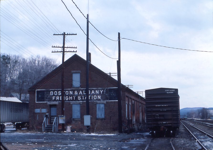 Former B&A freight station in Palmer, MA. on Jan. 25, 1988. Unfortunately, it has not survived.