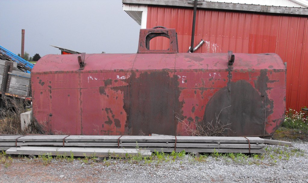 A former CR G41 coil hood is seen at a next to a business located in Cresson PA on 6/28/13.