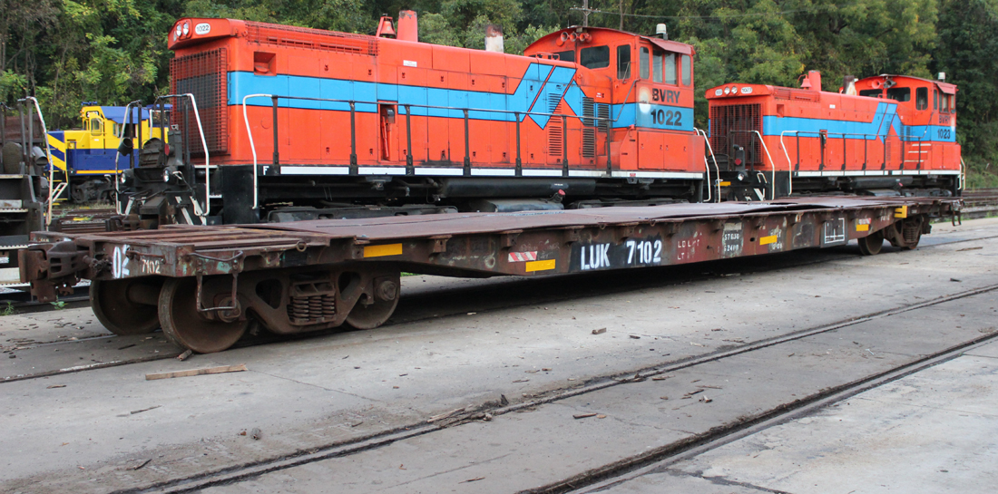 LUK 7102 is seen in captive service at Coatsville, PA on 10/10/16. Car is ex BVRY 87102, nee PRR unknown and was built 12-59.