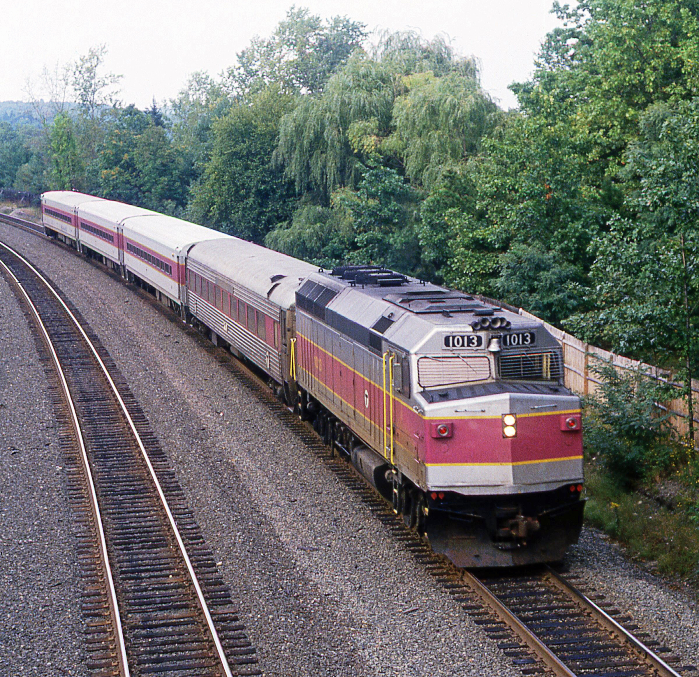 MBTA 1013 EMD F40PH Boston Line Wellesley Farms MA with MBTA train 451