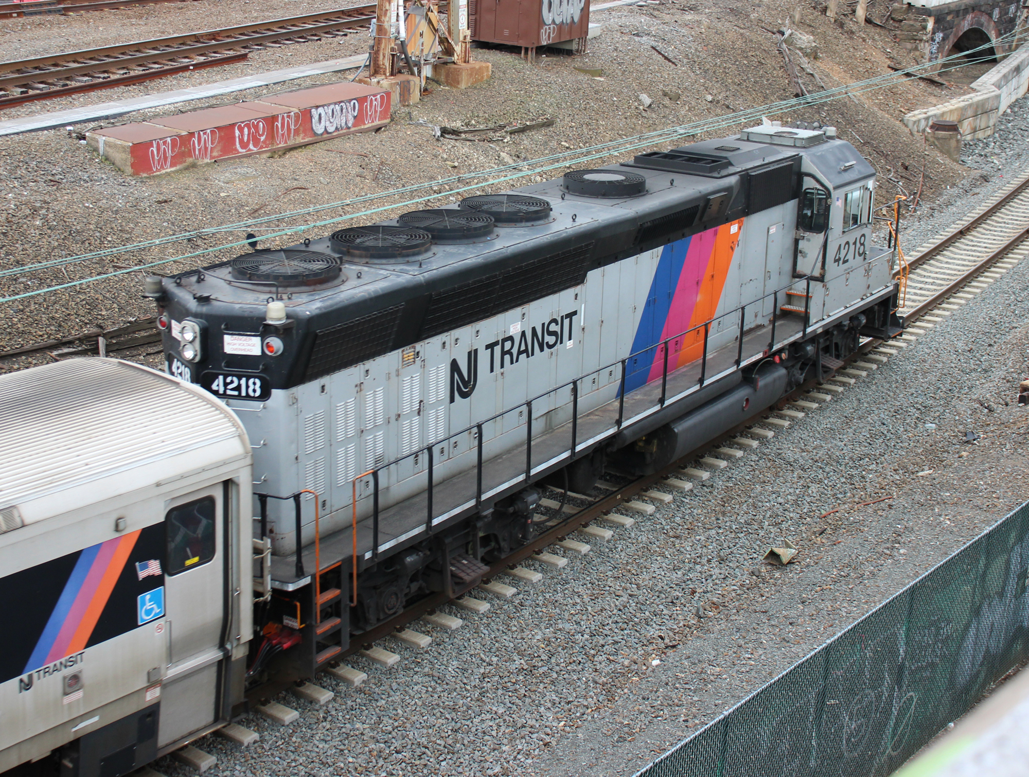 NJTR 4218 is seen heading South at ZOO Interlocking in Philadelphia, PA on 5/8/21. Unit was rebuilt from CR 3199/PC 3199 and was built as a GP40.