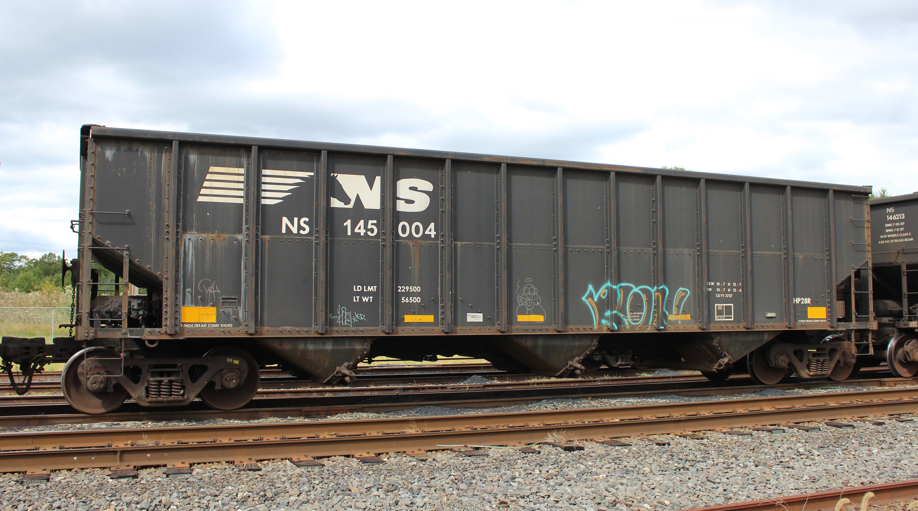 NS 145004 is seen at Deepwater, NJ on 9/30/17. Car is ex CR 496978, built 10-94 (stenciled 6-94) and was re-bodied 10-13 by FCA at Roanoke, VA.