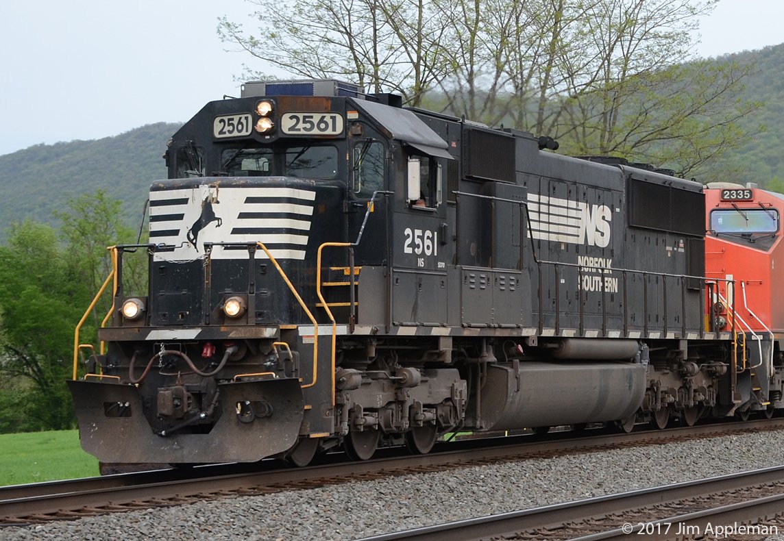 CR/NS 2561 SD70 leads a westbound intermodal freight at Horningford, PA.