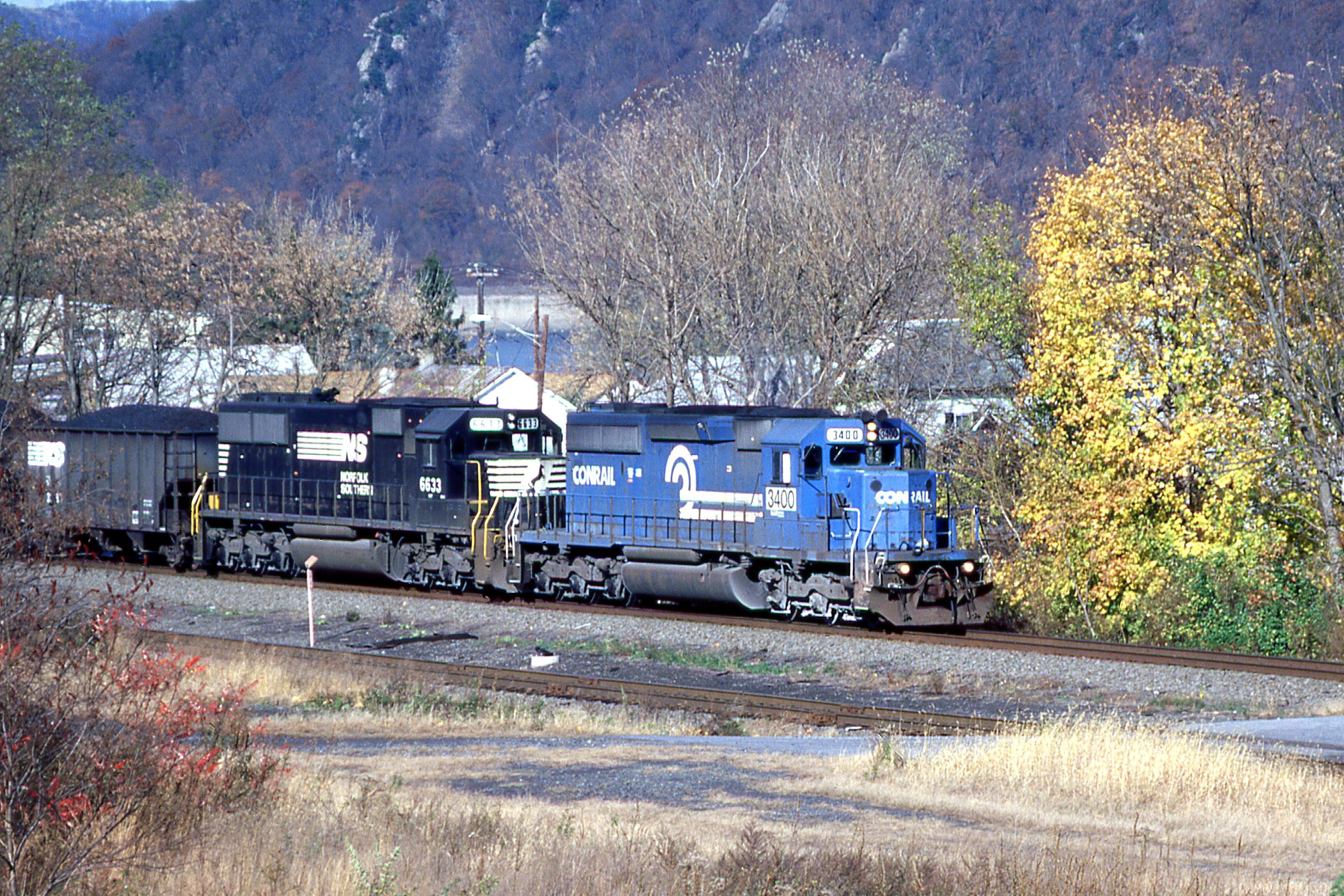 NS 3400 EMD SD40-2 Pittsburgh Line Marysville PA with unknown train