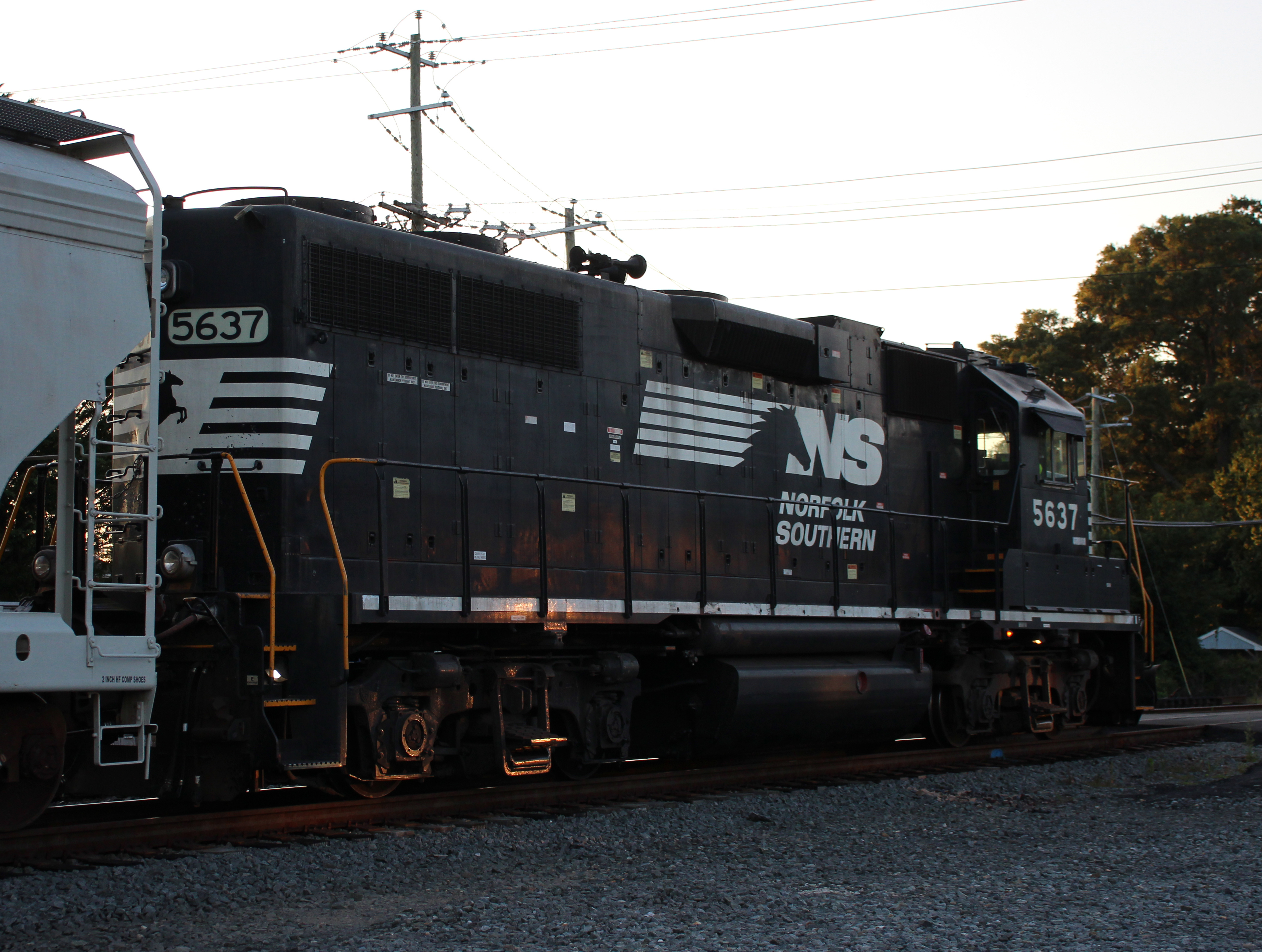 NS 5637 is seen on H04 at Perryville, MD on 8/22/24. Unit is ex NS 2925/CR 7873/PC 7873 and was rebuilt by NS to a GP38-2 and was released from JBS in April of 2006.