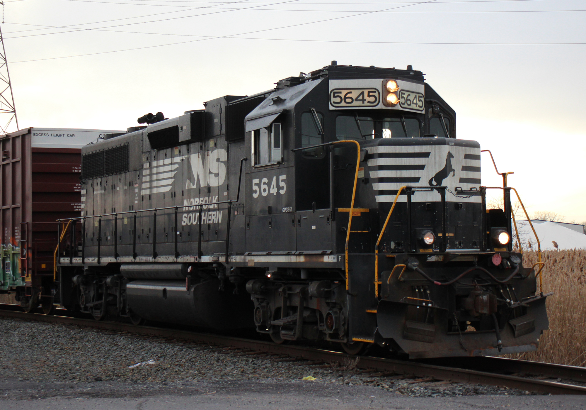 NS 5645 is seen on K53 at Wilmington, DE on 12/26/22. Unit is ex NS 2900/CR 7711/PC 7711 and was rebuilt by NS to a GP38-2 and was released from JBS in June of 2006.