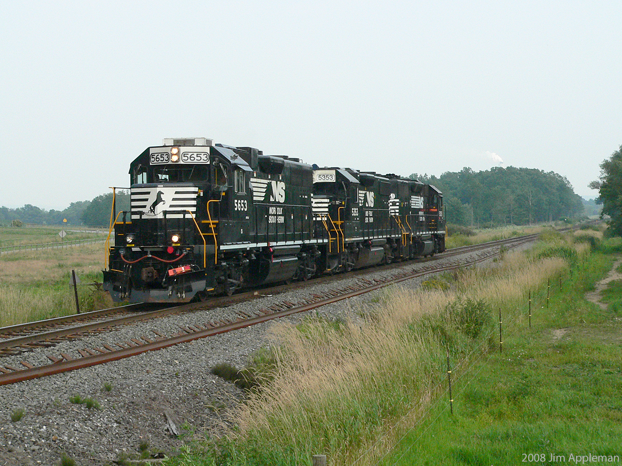NS local H45 heads west lite with two ex-CR geeps and an NS high short hood geep.