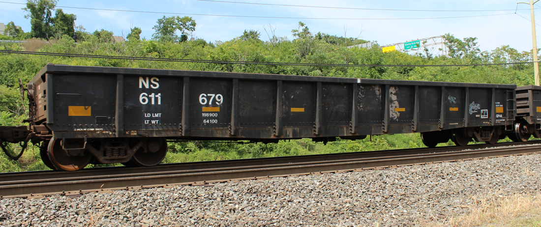NS 611679 is seen in the consist of EB NS 61Z at Wyomissing, PA on 8/16/14. Car is ex CR 579083/PC 579083 and was built 3-70.
