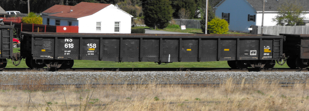 NS 618158 is seen on 69T at Marysville PA on 4/7/12. Car was rebuilt from a former CR G43 class gon.