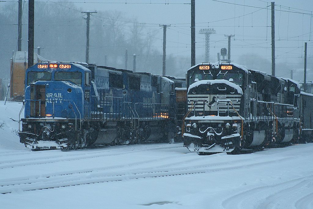 NS 6725, 6734, 6737 beside 7204 (ex CR 5590, 5605, 5608 beside 4106) 12-19-09 Enola, PA