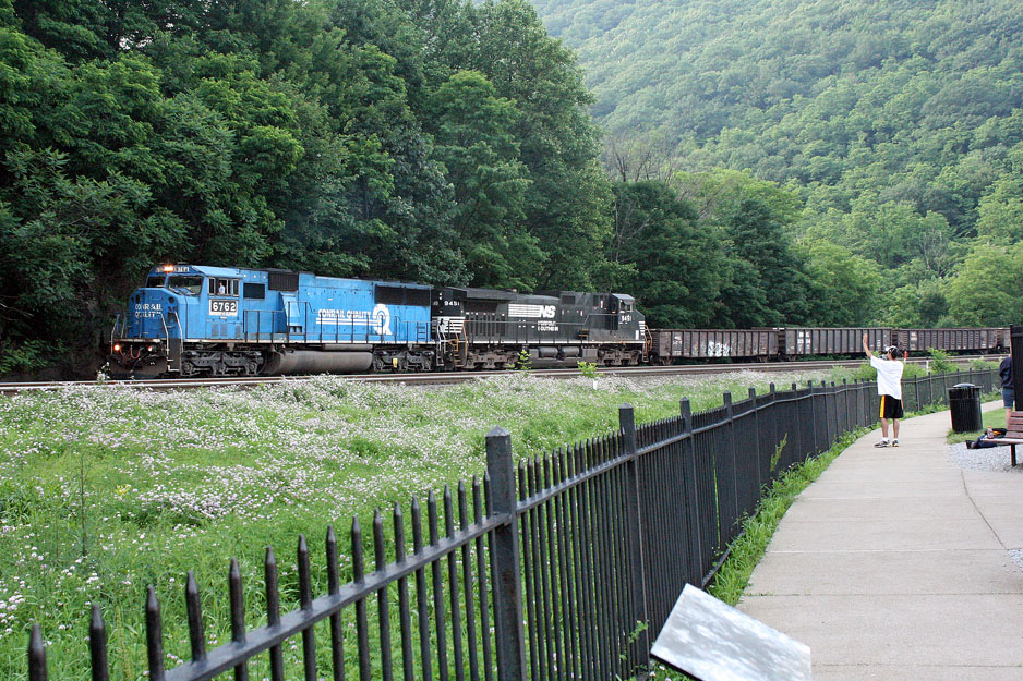 NS 6762 is on the point of 67Z at Horseshoe Curve 6/26/2009.