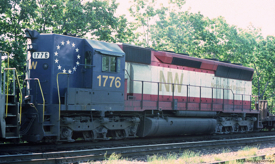 NW 1776 SD45 Bicentennial Unit was the trailing unit on this day's D&H Apollo 1 westbound intermodal train, stopped, waiting for a train coming up the mountain from Dupont Junction.