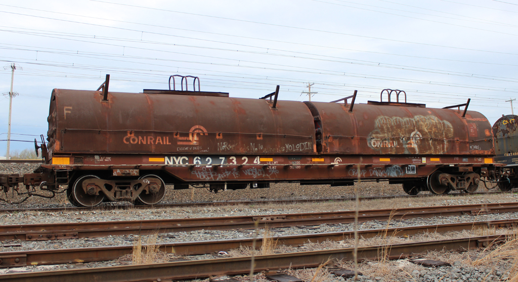 NYC 627324 is seen at Bristol, PA on 4/11/16. Car is ex CR 627324/CR 752324/PC 752324 and was built 9-69.