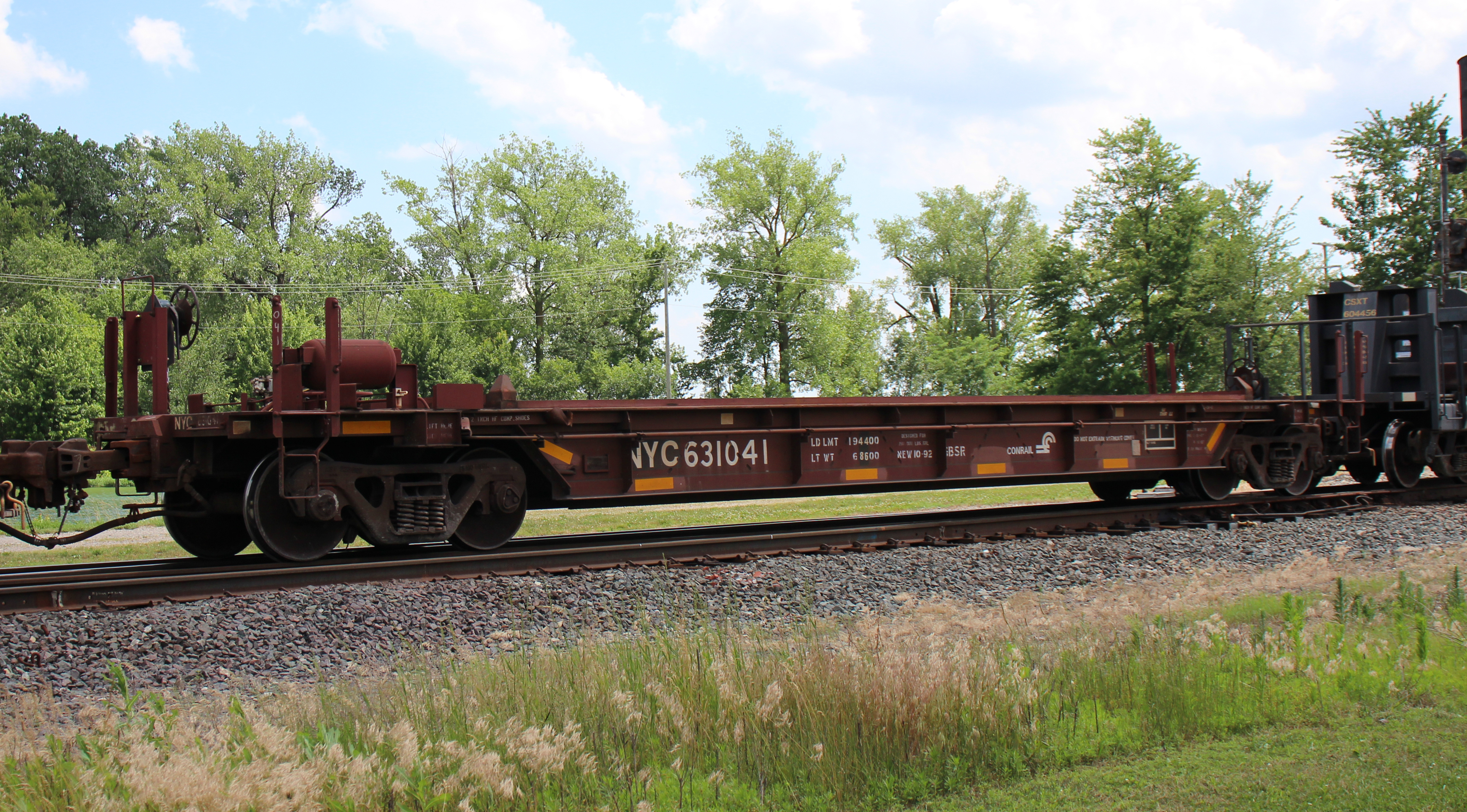 NYC 631041 is seen in the consist of CSX B523-27 at Deshler, OH on 6/27/25. Car is ex CR 631041 and was built 10-92 by Thrall.