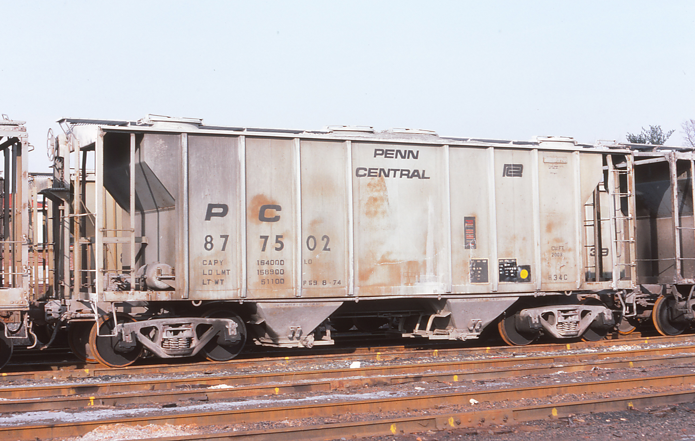 PC 877502 is seen at Kingston, NY in Feb of 1980. Car is ex PRR 257847, built 4-58 by P-S and was painted P59 8-74.