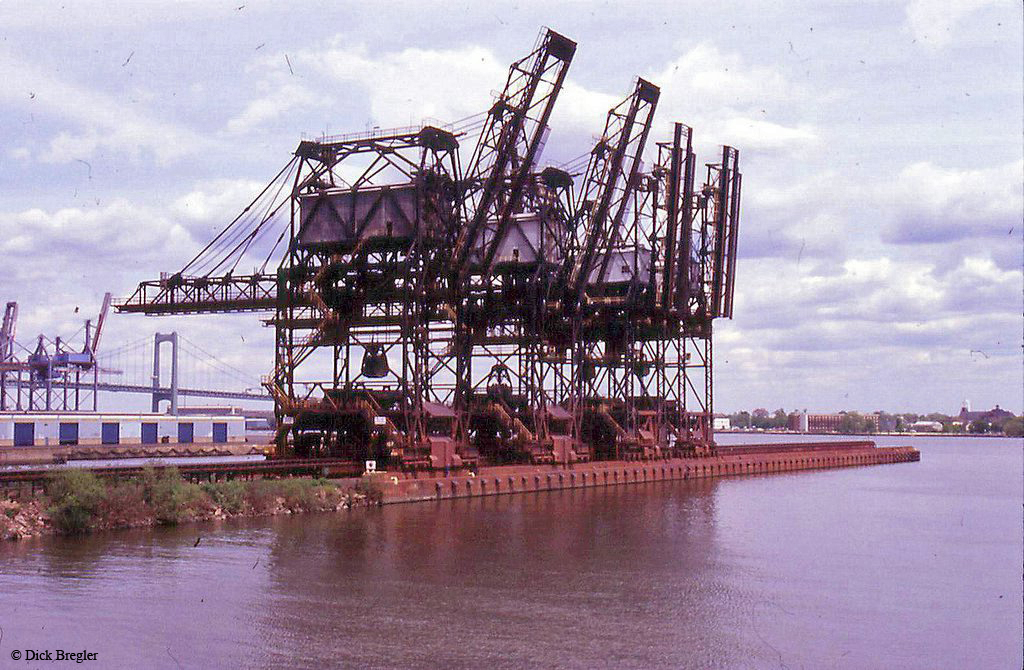A view of the 4 ore unloaders at Pier 122 in Philly, circa 1984. Photographer Dick Bregler Photo Date 12/10/08 Photo Location Name Pier 122 See More Photos Conrail Facilities Philadelphia Piers