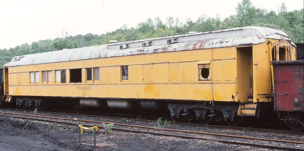 PRR 493256 is seen at Altoona, PA on 6/7/97. Car was built as PRR 8663 in 6-24 and carried the name "Lake Girard" and was converted to MOW service by the PRR in Feb of 1967.