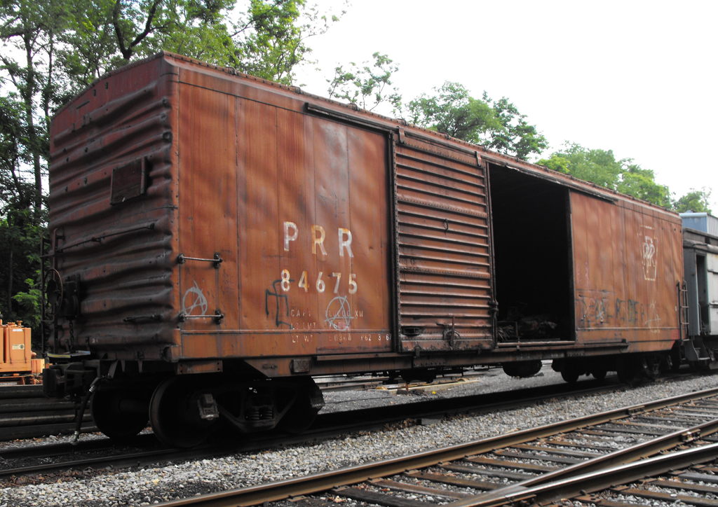 PRR 84675 is seen at Duncansville PA on 6/28/13. Car was built 2-42 and was painted P62 3-67.