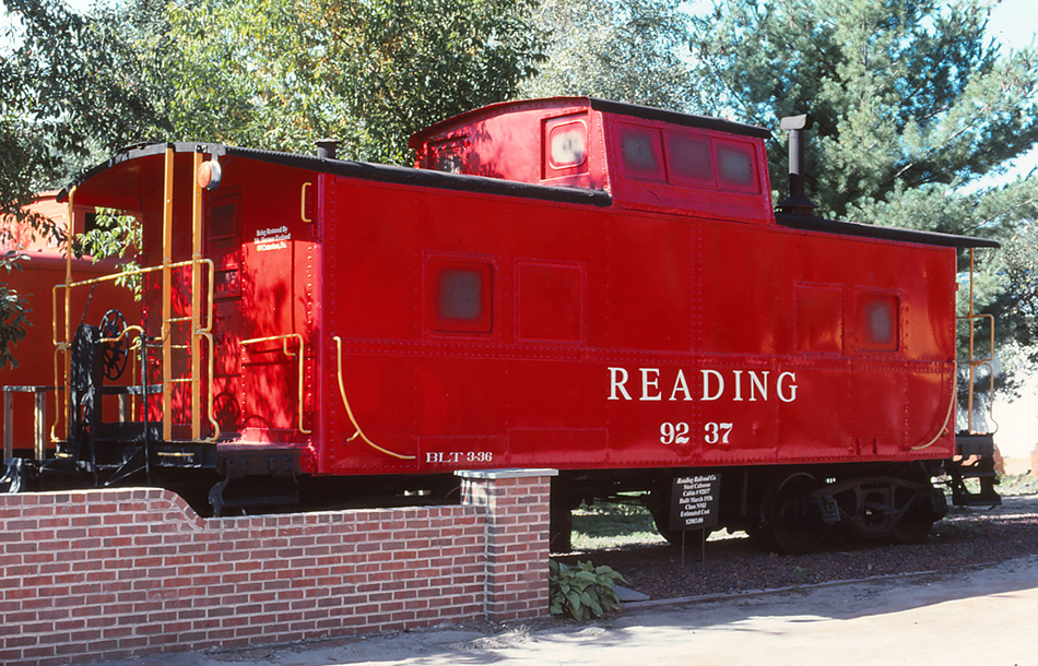 RDG 92837 is seen restored at Catawissa PA on 9/27/97. Caboose is ex CR 18722 and was built 3-36 and was classed N4 by CR.