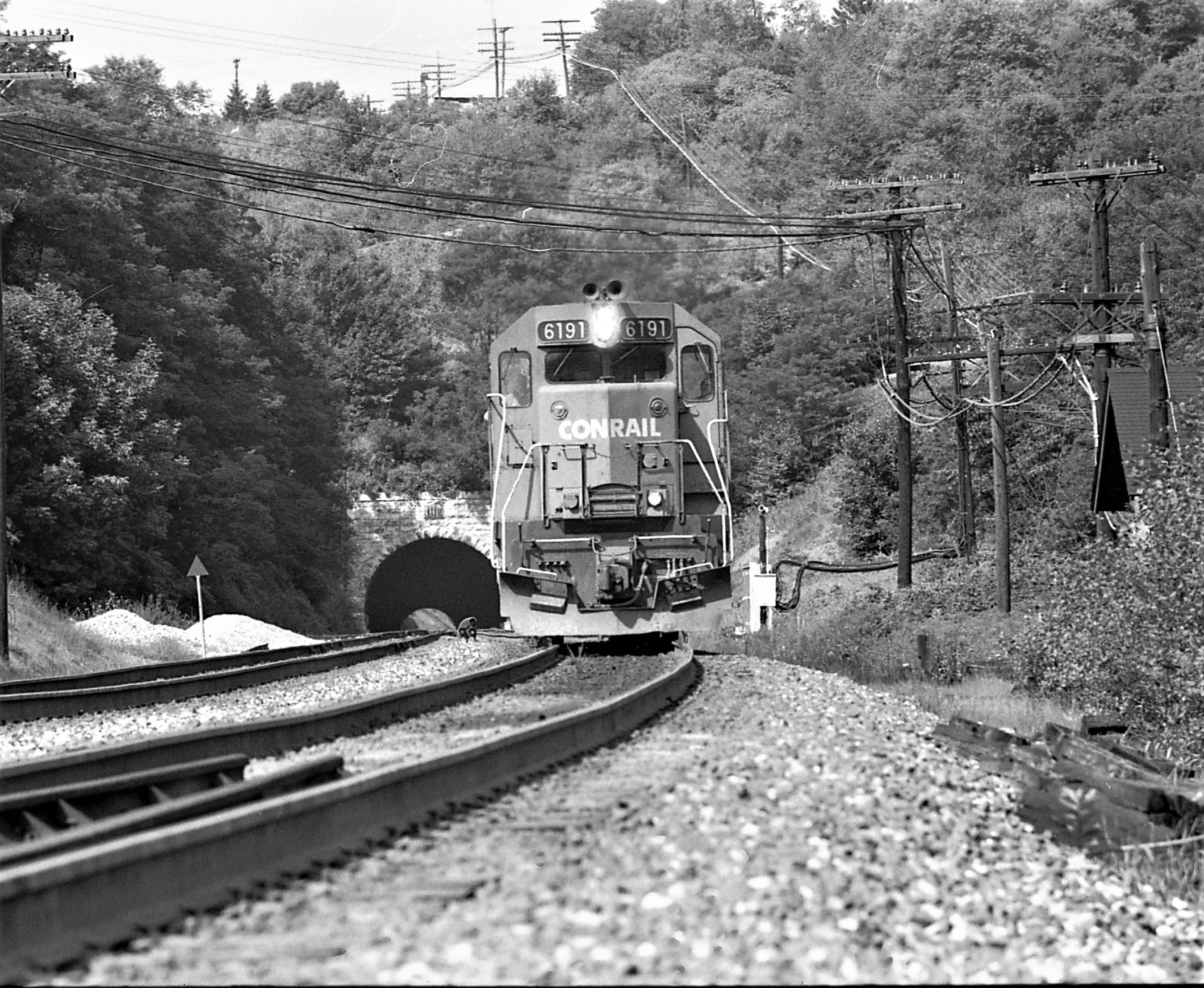 SD-40 # 6191 at Tunnel Hill, Gallitzen, PA. August 18, 1977. These are the helper set going back to Cressons, PA.