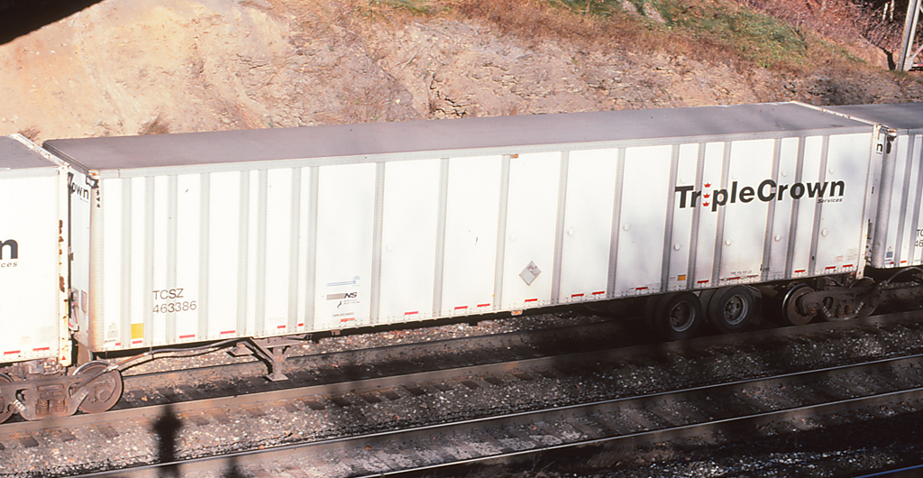 TCSZ 463386 is seen in the consist of a WB roadrailer at Cresson, PA on 11/24/98. Photographer Jeff Weaver Photo Date 11/24/98 Photo Location Name RT 53 Bridge See More Photos Conrail Freight Cars Roadrailers