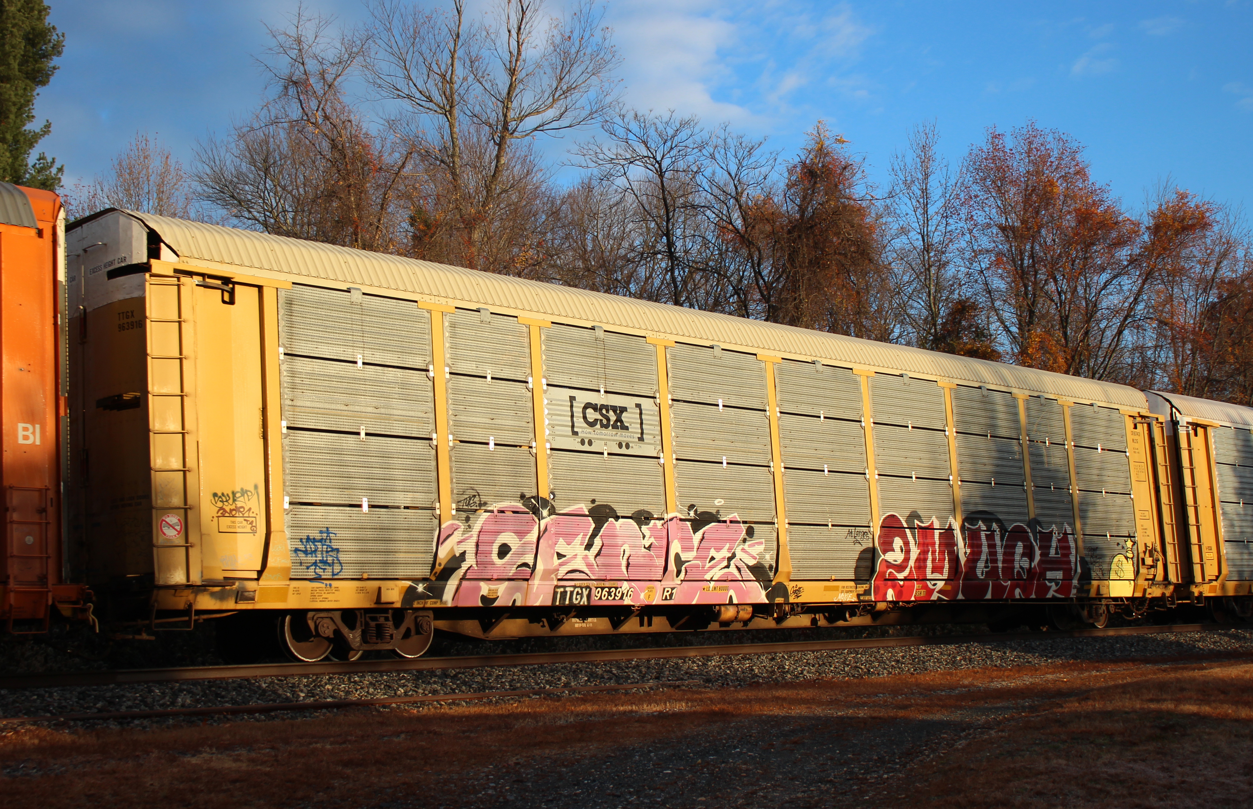 TTGX 963916 is seen in the consist of CSX M277-23 at Perryville, MD on 11/23/25. Rack number is CR 6743 and was built 10-88. It was then rebuilt and repainted CSX in 4-18 by MRW-WR and is still stenciled ML2G.