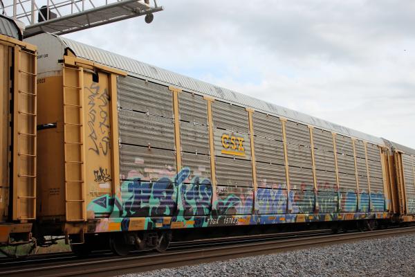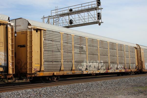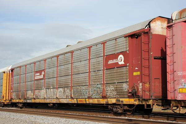 TTGX 980175 is seen in the consist of CSX Q216-11 at Newark, DE on 11/14/20. Rack was built as a unknown CR ML2L class rack in 12-94. It was then rebuilt, repainted and renumbered to NS 28183 in 12-14. Rack is now classed FB556 by NS.